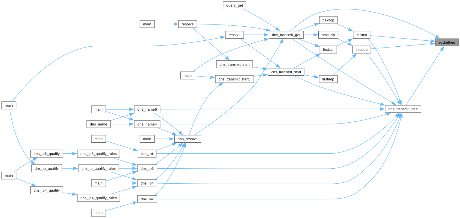 void | socketfree (struct dns_transmit *) |