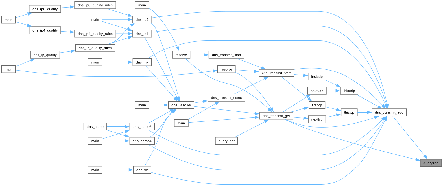 void | queryfree (struct dns_transmit *) |