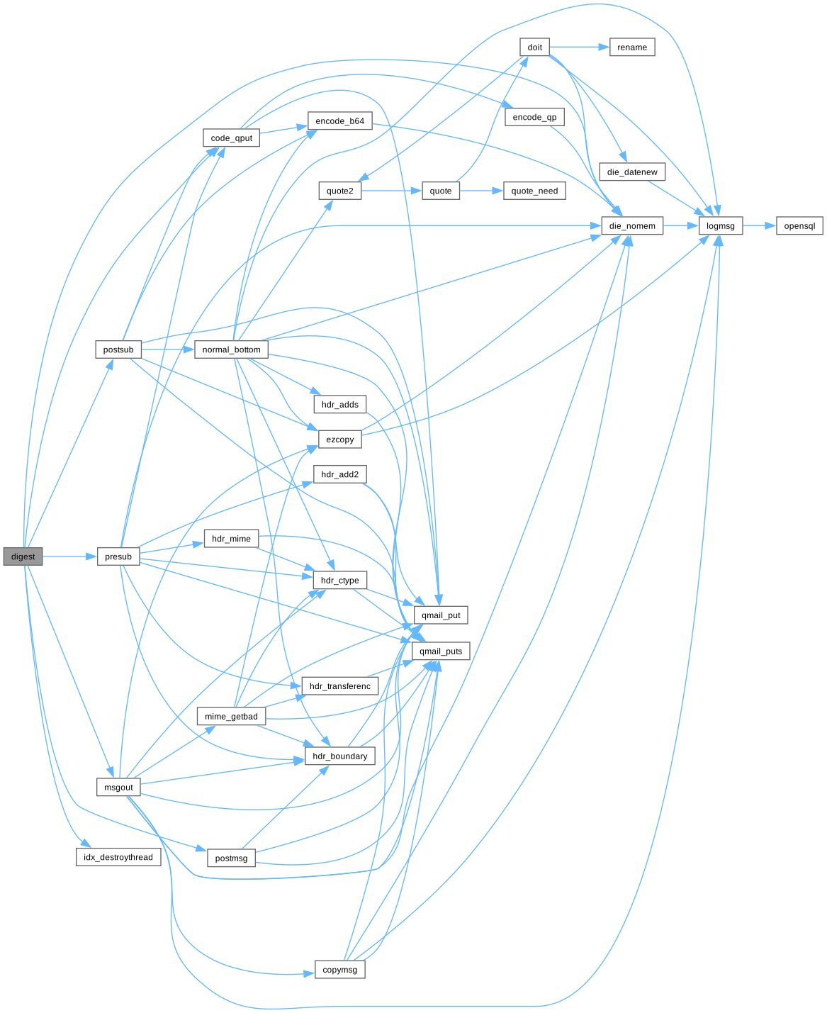 | void | digest (msgentry *msgtable, subentry *subtable, authentry *authtable, unsigned long from, unsigned long to, stralloc *subj, int factype, char format) |