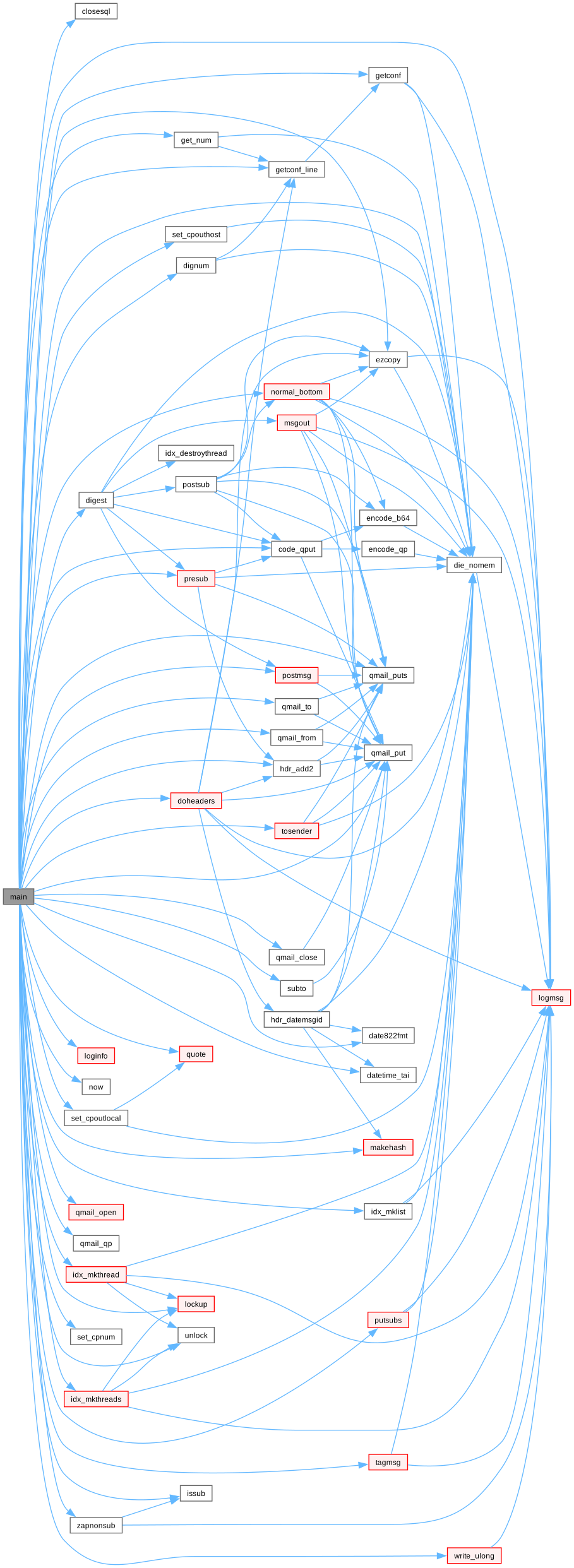 #include <sys/types.h>#include <sys/stat.h>#include <unistd.h>#include "alloc.h"#include "error.h"#include "stralloc.h"#include "str.h"#include "env.h"#include "sig.h"#include "getconf.h"#include "byte.h"#include "getln.h"#include "case.h"#include "qmail.h"#include "buffer.h"#include "readwrite.h"#include "seek.h"#include "quote.h"#include "datetime.h"#include "now.h"#include "date822fmt.h"#include "fmt.h"#include "getoptb.h"#include "cookie.h"#include "makehash.h"#include "ezcopy.h"#include "constmap.h"#include "subscribe.h"#include "hdr.h"#include "open.h"#include "lock.h"#include "scan.h"#include "idxthread.h"#include "idx.h"#include "mime.h"#include "errtxt.h"#include "auto_version.h"#include "logmsg.h"#include "lockfile.h"#include "ezmlm.h"