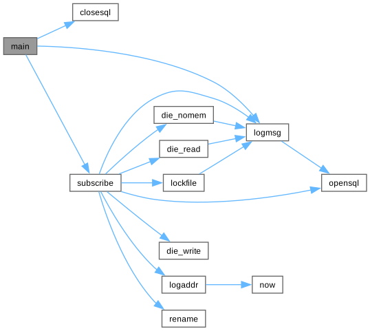 #include <sys/types.h>#include <sys/stat.h>#include <unistd.h>#include "subscribe.h"#include "getoptb.h"#include "stralloc.h"#include "buffer.h"#include "readwrite.h"#include "getln.h"#include "scan.h"#include "errtxt.h"#include "idx.h"#include "auto_version.h"#include "logmsg.h"