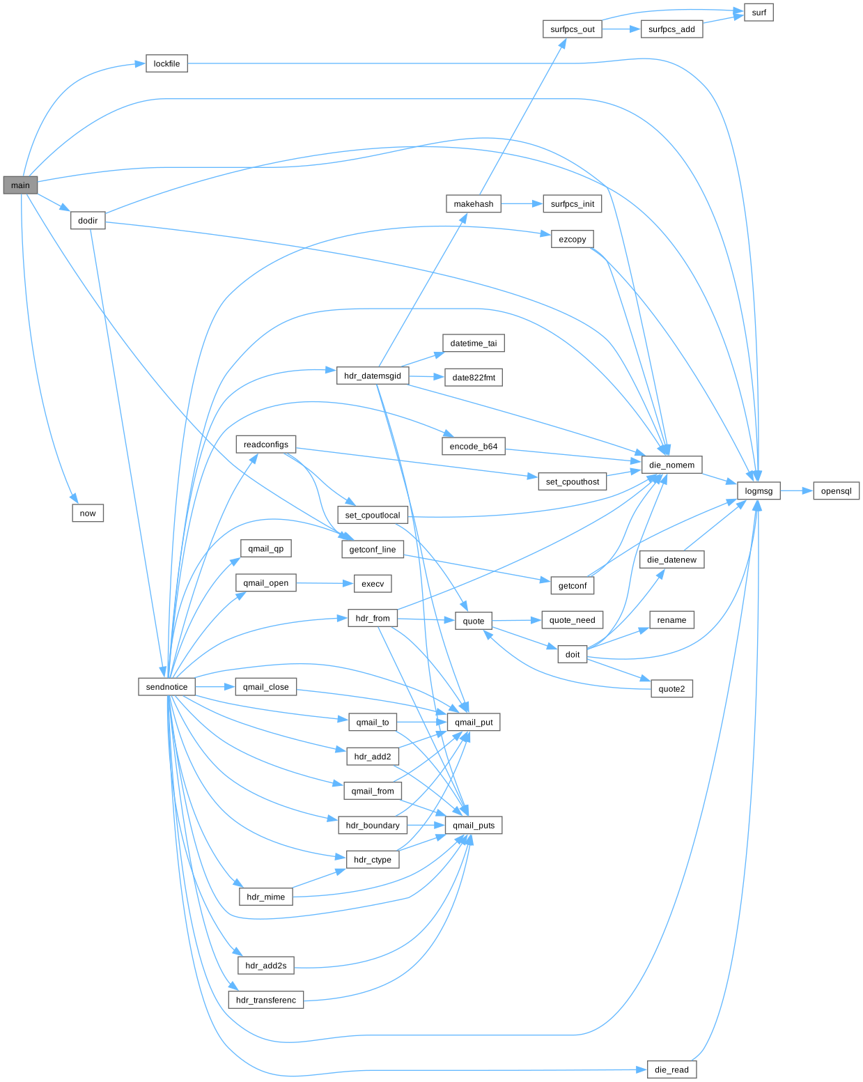 #include <sys/types.h>#include <sys/stat.h>#include <unistd.h>#include "error.h"#include "stralloc.h"#include "str.h"#include "env.h"#include "sig.h"#include "getconf.h"#include "byte.h"#include "getln.h"#include "case.h"#include "qmail.h"#include "buffer.h"#include "readwrite.h"#include "seek.h"#include "quote.h"#include "datetime.h"#include "now.h"#include "direntry.h"#include "cookie.h"#include "getoptb.h"#include "fmt.h"#include "errtxt.h"#include "ezcopy.h"#include "open.h"#include "scan.h"#include "lock.h"#include "hdr.h"#include "idx.h"#include "mime.h"#include "auto_version.h"#include "logmsg.h"#include "lockfile.h"#include "ezmlm.h"