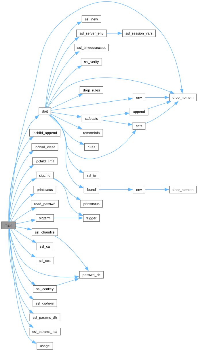 #include <unistd.h>#include <sys/types.h>#include <sys/socket.h>#include <sys/param.h>#include <signal.h>#include <netdb.h>#include <fcntl.h>#include <arpa/inet.h>#include "ucspissl.h"#include "uint_t.h"#include "str.h"#include "byte.h"#include "fmt.h"#include "scan.h"#include "ip.h"#include "fd.h"#include "exit.h"#include "env.h"#include "prot.h"#include "open.h"#include "wait.h"#include "stralloc.h"#include "genalloc.h"#include "alloc.h"#include "buffer.h"#include "getln.h"#include "error.h"#include "logmsg.h"#include "getoptb.h"#include "pathexec.h"#include "socket_if.h"#include "ndelay.h"#include "remoteinfo.h"#include "rules.h"#include "sig.h"#include "iopause.h"#include "dnsresolv.h"#include "auto_cafile.h"#include "auto_cadir.h"#include "auto_ccafile.h"#include "auto_dhfile.h"#include "auto_certfile.h"#include "auto_certchainfile.h"#include "auto_keyfile.h"#include "auto_ciphers.h"