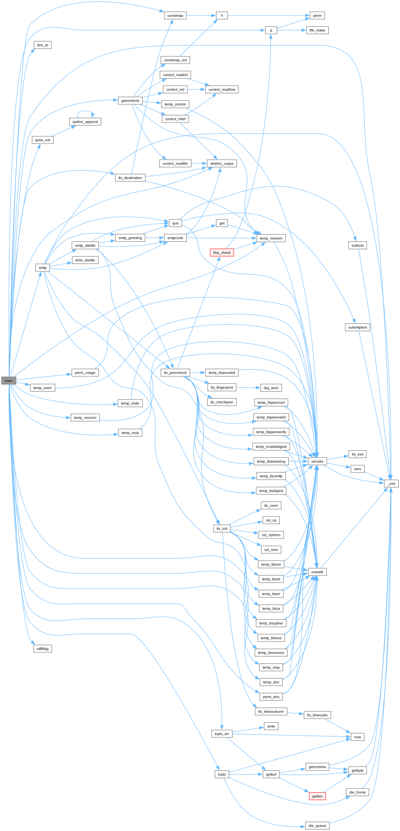 #include <sys/types.h>#include <sys/socket.h>#include <sys/stat.h>#include <netinet/in.h>#include <arpa/inet.h>#include <unistd.h>#include "sig.h"#include "genalloc.h"#include "stralloc.h"#include "buffer.h"#include "scan.h"#include "case.h"#include "byte.h"#include "error.h"#include "auto_qmail.h"#include "control.h"#include "dns.h"#include "alloc.h"#include "quote.h"#include "ip.h"#include "ipalloc.h"#include "ipme.h"#include "str.h"#include "now.h"#include "exit.h"#include "constmap.h"#include "tcpto.h"#include "socket_if.h"#include "ucspissl.h"#include "timeout.h"#include "timeoutconn.h"#include "tls_remote.h"#include "tls_errors.h"#include "tls_timeoutio.h"#include "uint_t.h"#include "qmail.h"