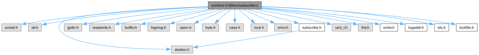 #include <unistd.h>#include "str.h"#include "stralloc.h"#include "getln.h"#include "readwrite.h"#include "buffer.h"#include "logmsg.h"#include "open.h"#include "byte.h"#include "case.h"#include "lock.h"#include "error.h"#include "subscribe.h"#include "uint_t.h"#include "fmt.h"#include "errtxt.h"#include "logaddr.h"#include "idx.h"#include "lockfile.h"
